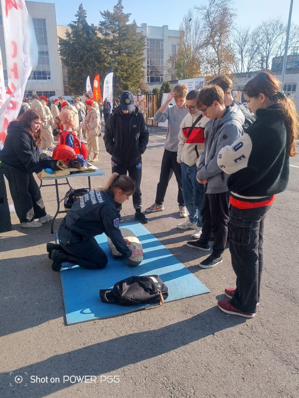 Студенты-спасатели ДГТУ совместно с АНО в сфере ЧС «Союз молодежи и добровольцев Дона» также представили демонстрационную точку, на которой показали аварийно-спасательное и пожарное оборудование, а также манекены для постоянных тренировок добровольцев и населения. Все желающие смогли задать интересующие вопросы и отработать проведение сердечно-легочной реанимации и если человек подавился.