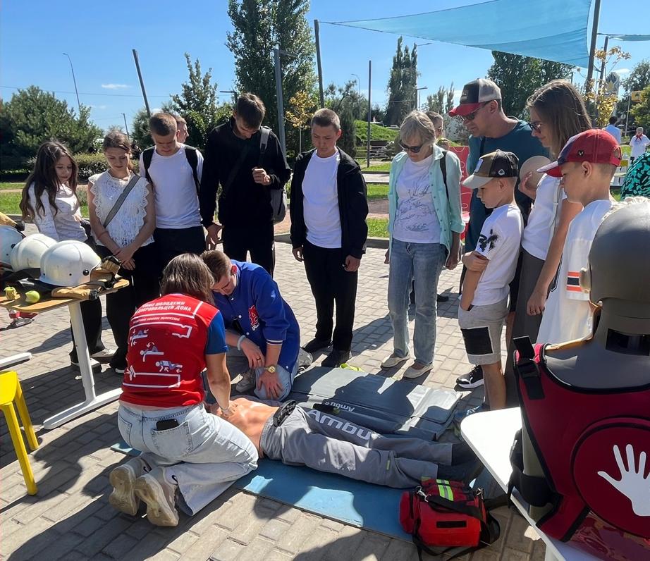 Добровольцы АНО в сфере ЧС «Союз молодежи и добровольцев Дона» совместно со студентами-спасателями пожарно-спасательного отряда «Донской» организовали демонстрационную точку и мастер-классы по первой помощи и пожарной безопасности. Все желающие поиграли в «крестики-нолики» огнетушителями, выбили страйк в рукавном боулинге, примерили боевую одежду пожарного, поработали гидравлическим аварийно-спасательным инструментом и отработали проведение сердечно-легочной реанимации.